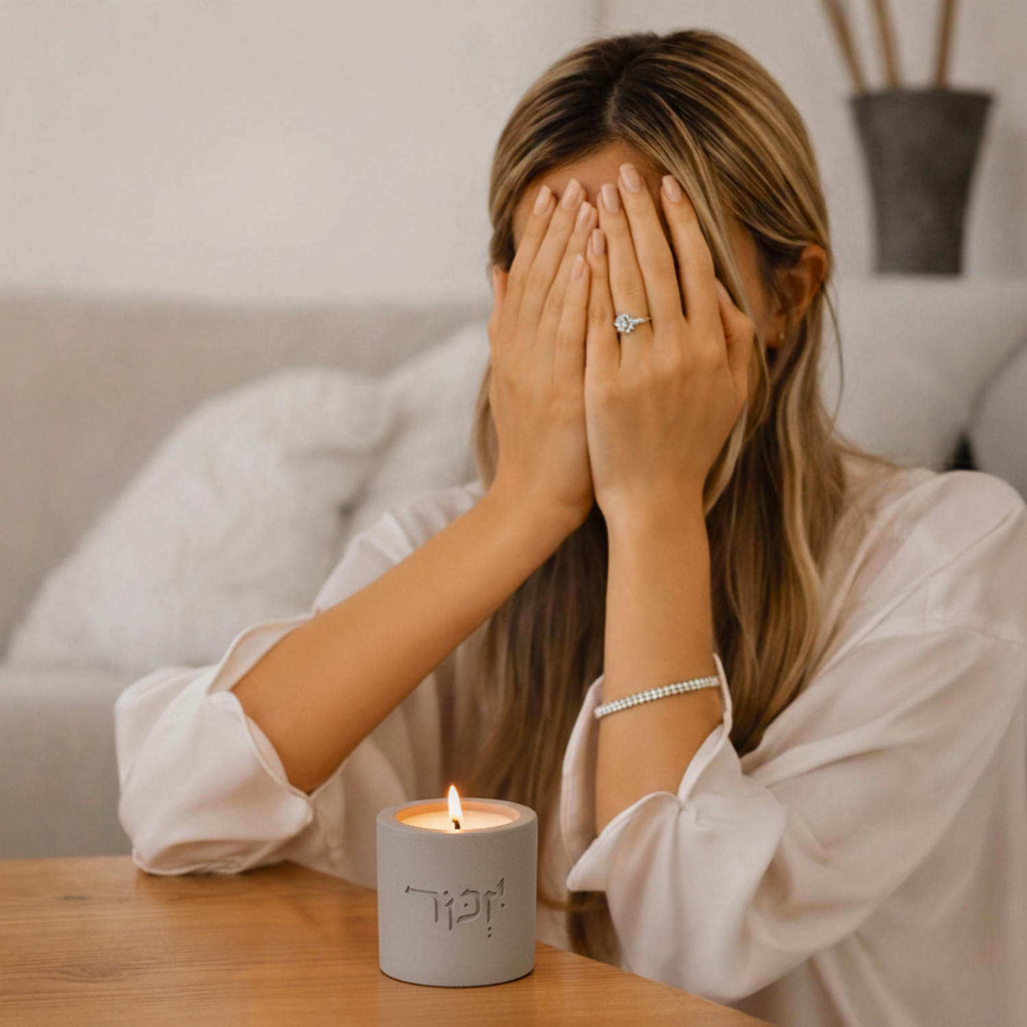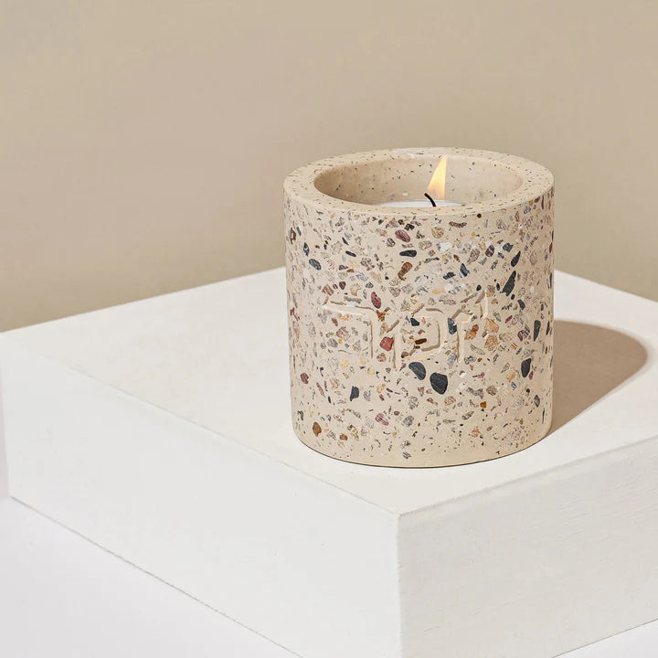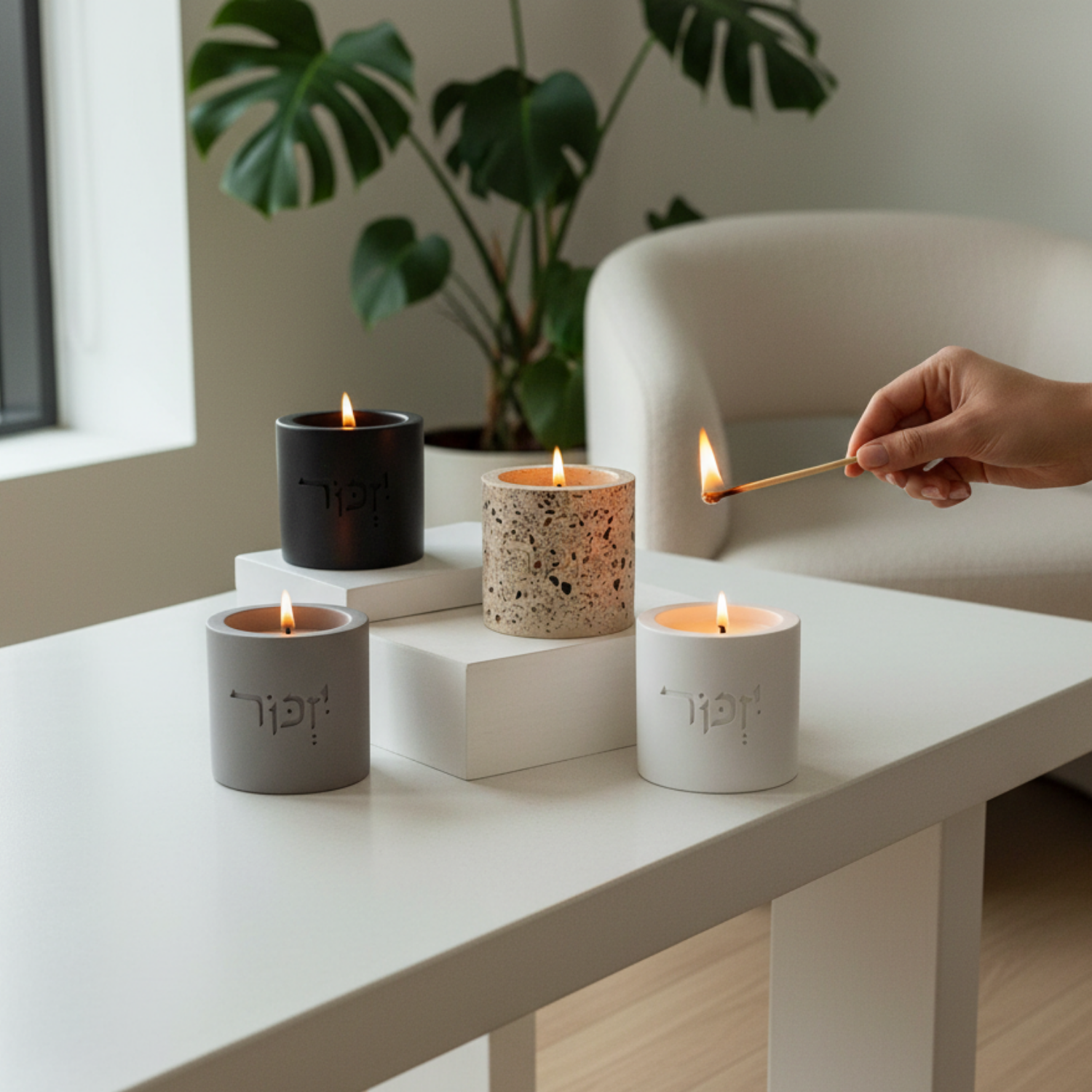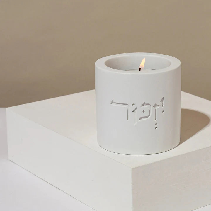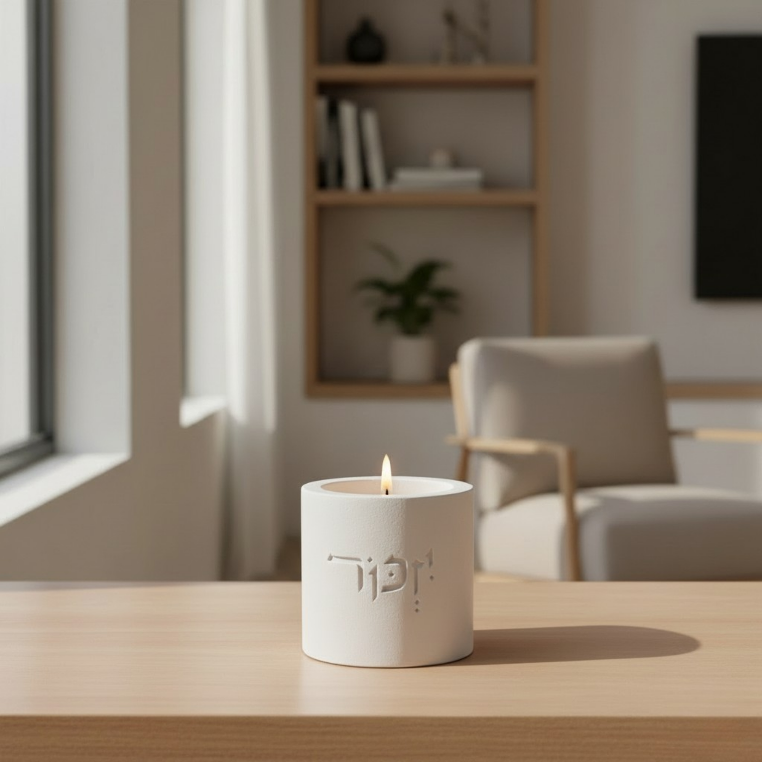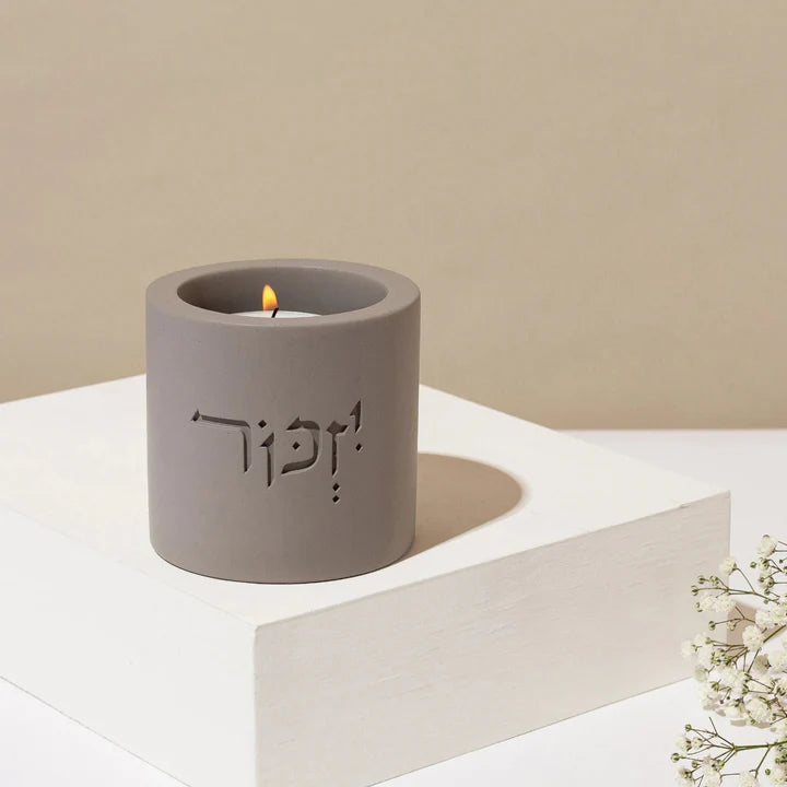 A modern, handcrafted candlestick made from natural concrete – designed to honor memory with dignity and timeless elegance. The engraved “Yizkor” inscription adds a sacred touch to this clean, minimalist piece.