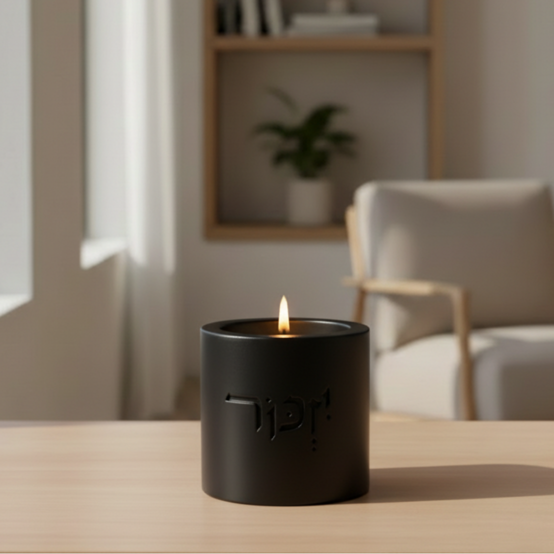 • Thoughtfully crafted stand for lighting a soul candle (Ner Neshama)