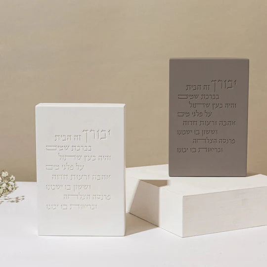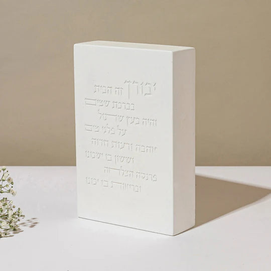 The traditional Home Blessing gets a fresh interpretation: crafted from natural concrete, handmade with precise engraving and a clean, minimalist look.