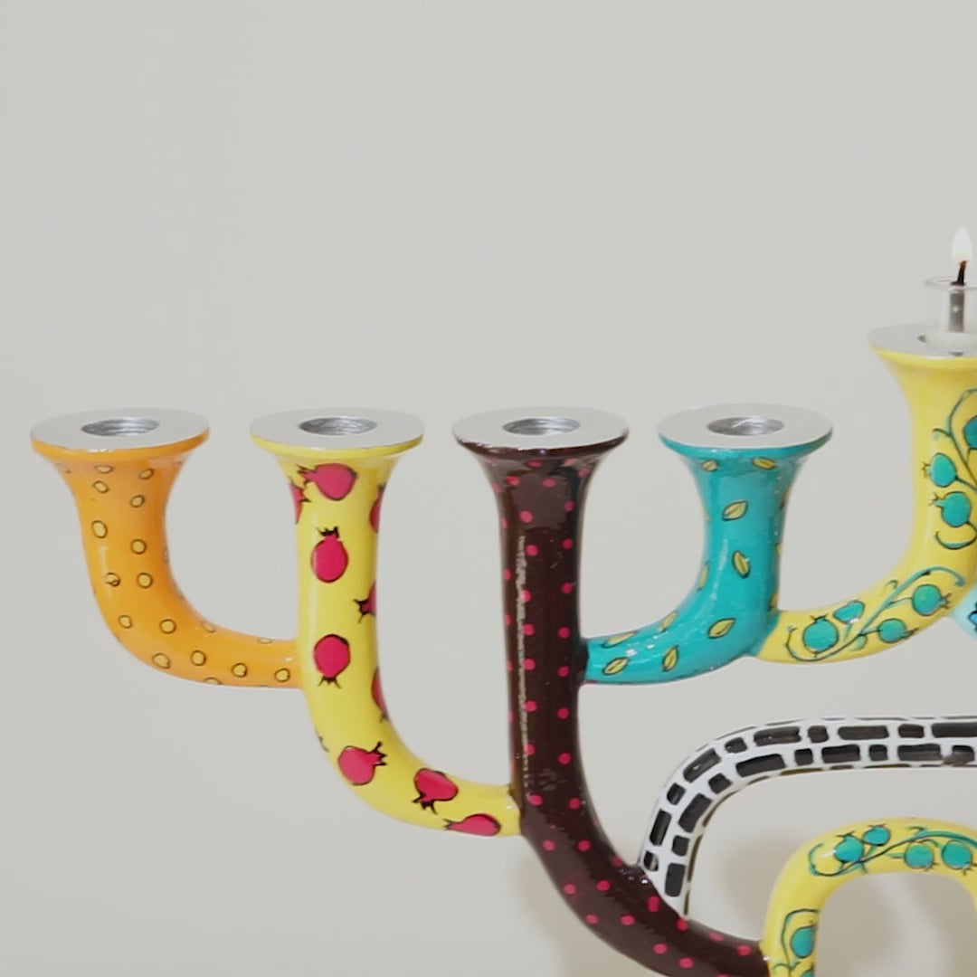 Hand-Painted Hanukkah Menorah with Modern Design – Loopa Series