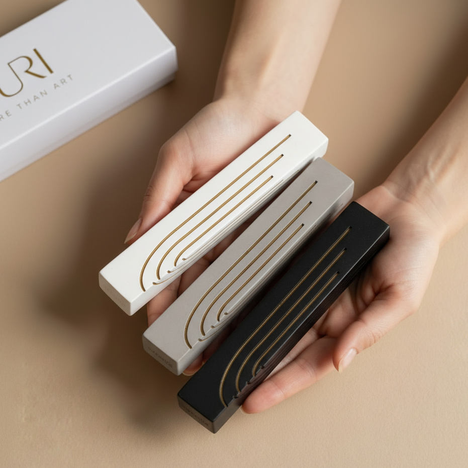 🪨 Material: Natural concrete with engraved gold-coated detailing