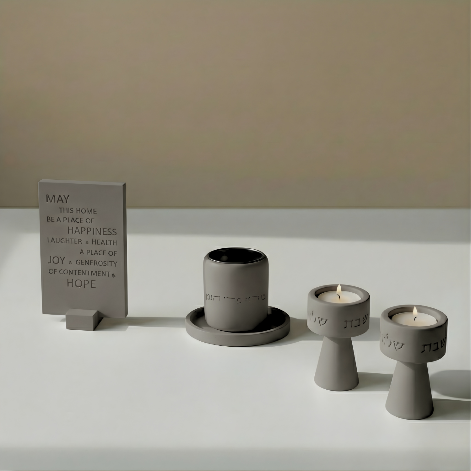 Celebrate the beauty of Shabbat with a masterpiece of modern design. The Timeless Glow collection seamlessly merges sacred Jewish tradition with a sleek, industrial aesthetic, creating an atmosphere of light, inspiration, and refined style in any home.