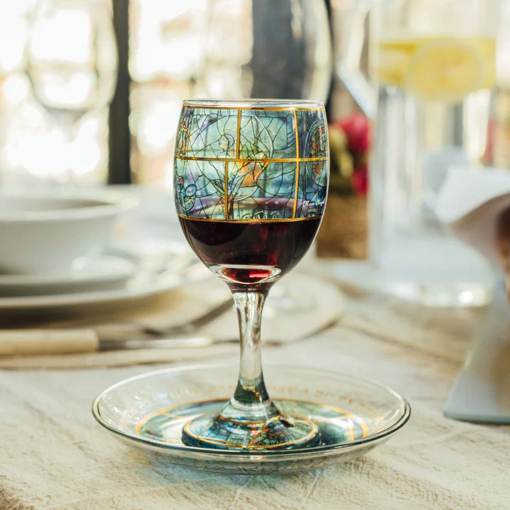 Chagall-Inspired Kiddush Cup with Laser Engraving and Base – Chagall Glass Series