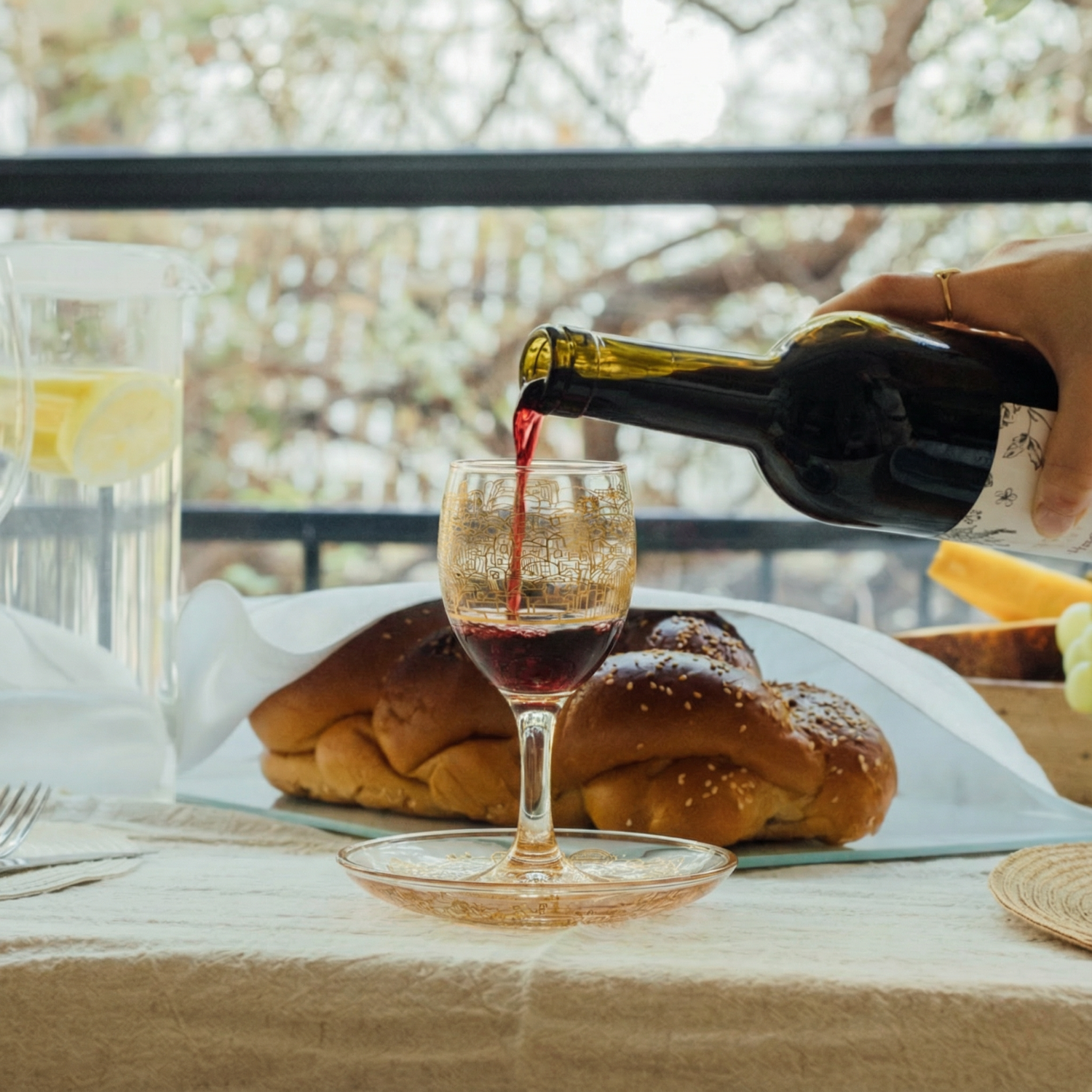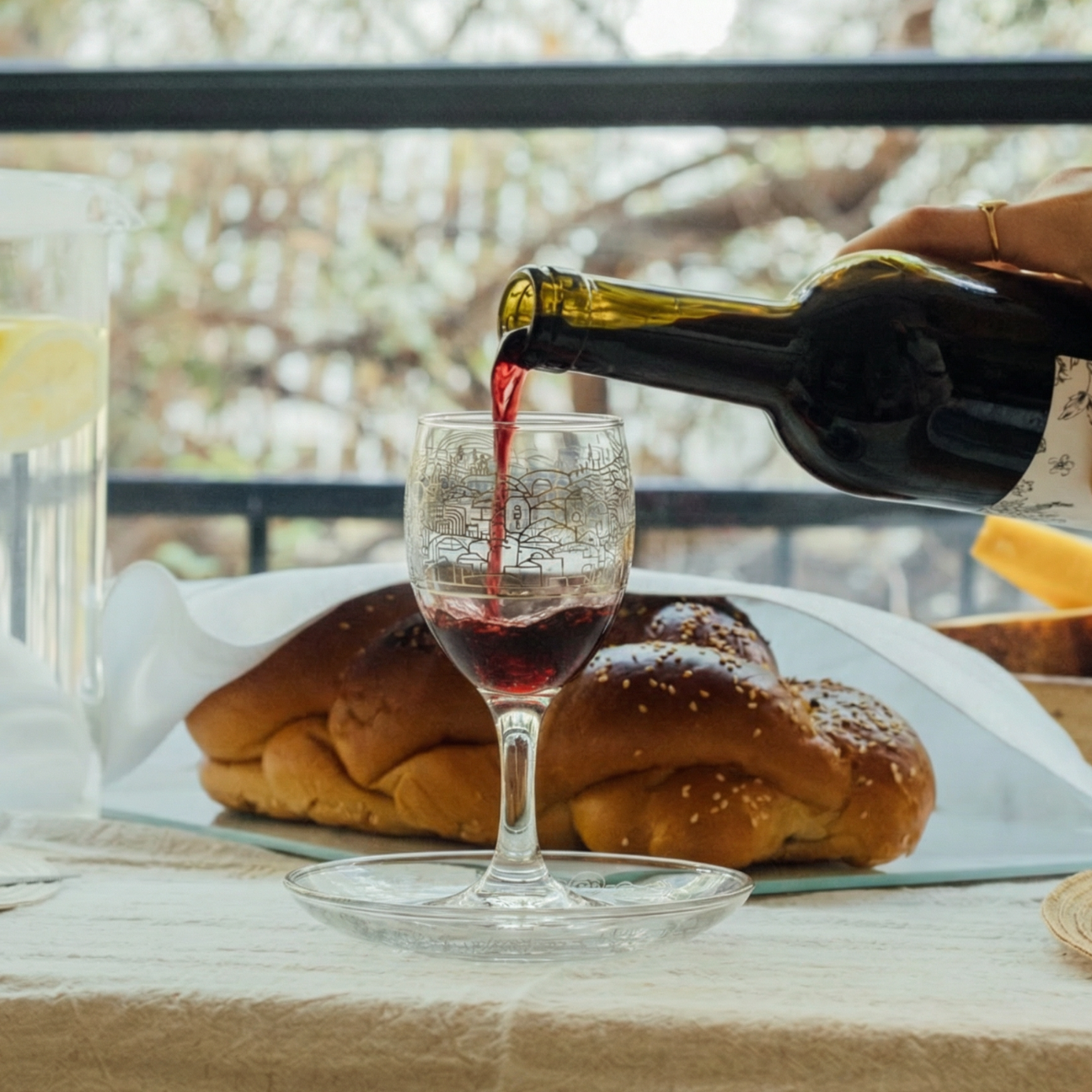 ✨ Elevate your Shabbat and holiday table with a beautifully handcrafted glass Kiddush cup, featuring an elegant Jerusalem backdrop adorned with delicate gold or silver detailing.