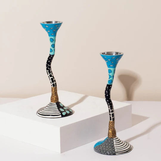 Made from durable cast aluminum and painted by hand, each pair is a true statement piece — perfect for lighting Shabbat candles, decorating your home, or gifting someone special.