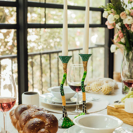 Meet the candle holders that bring movement, color, and art to your Shabbat table ✨