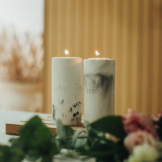 Each candle holder is engraved with “Shabbat” on one side and “Shalom” on the other — a refined design that gracefully blends tradition with contemporary aesthetics.