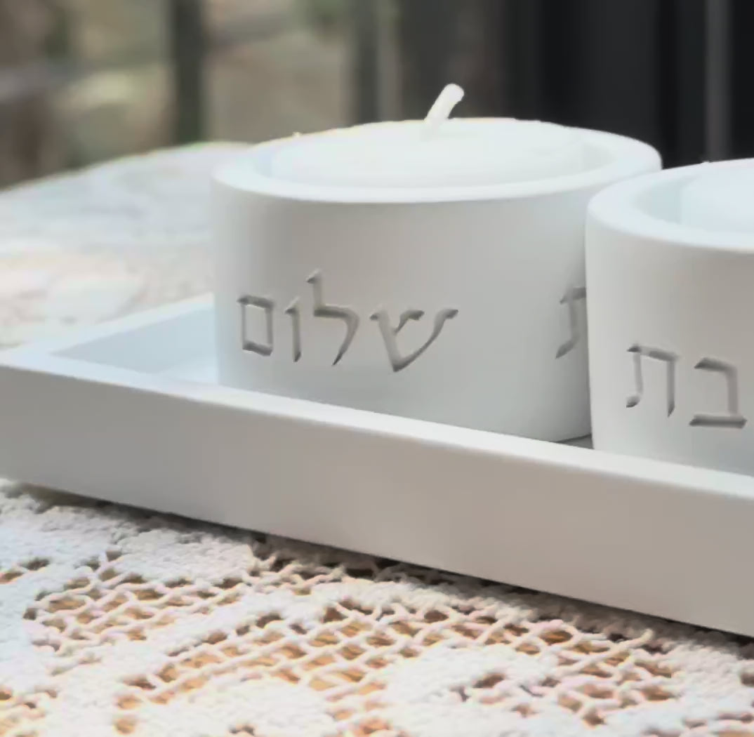 ✨ Pure Line Shabbat Set – Candle Holders with Concrete Tray