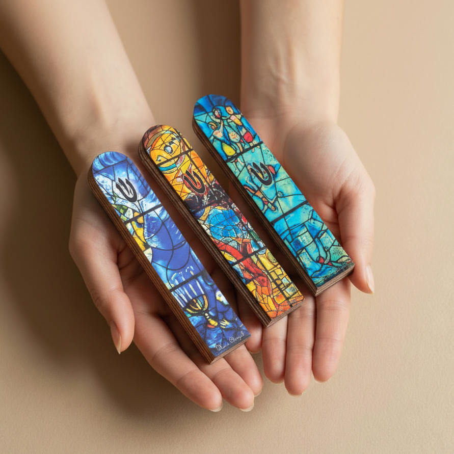 Wood Mezuzah for Door – Artistic Stained Glass Inspiration | Chagall Series